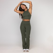 Calça Bailarina Sandra é confeccionada em poliamida, possui dupla frontura (zero transparência), ela oferece um toque gelado, alta respirabilidade e a compressão ideal para valorizar a silhueta com total conforto. Sua modelagem bailarina (flare) alonga visualmente as pernas, proporcionando um caimento sofisticado que transita facilmente da academia ao look casual. O design é enriquecido com um prático bolso embutido no cós, perfeito para guardar pequenos itens com segurança durante o movimento.