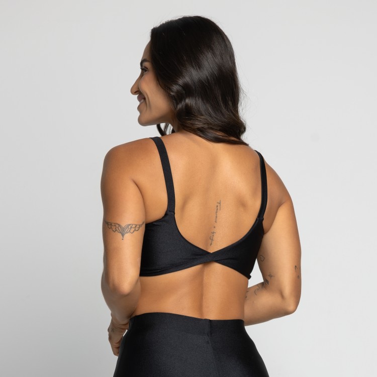 Com modelagem moderna e toque sofisticado, o Top Alicia combina estilo e conforto em uma peça só. Seu diferencial está no recorte posterior com detalhe cruzado nas costas, que valoriza a silhueta e garante um visual autêntico. Ideal para quem busca liberdade de movimento sem abrir mão da estética. O tecido Trilobal traz brilho sutil, toque suave e alta elasticidade – perfeito para acompanhar seu ritmo!