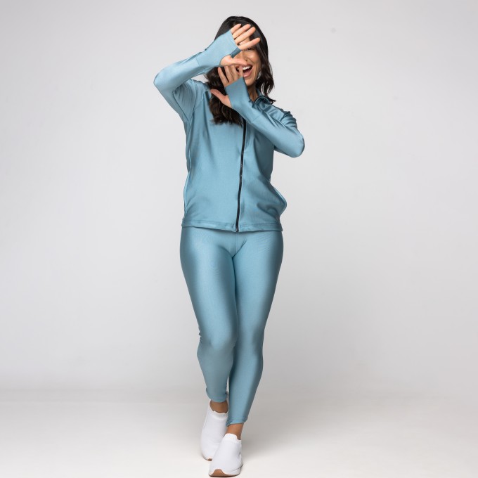 • Casaco Feminino Metalizado Punho Dedinho com Gola Alta Agnes