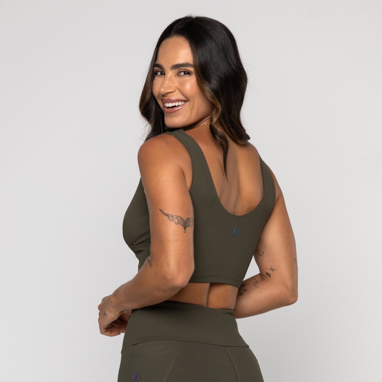 Produzido em Tecido Block Canelado, oferece toque macio, boa elasticidade e sustentação média. Possui forro interno na cor branca e com entrada para bojo, garantindo mais cobertura e segurança.