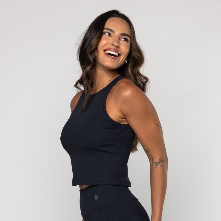 O Cropped Cinthia combina o visual de uma regata com a funcionalidade de um top.