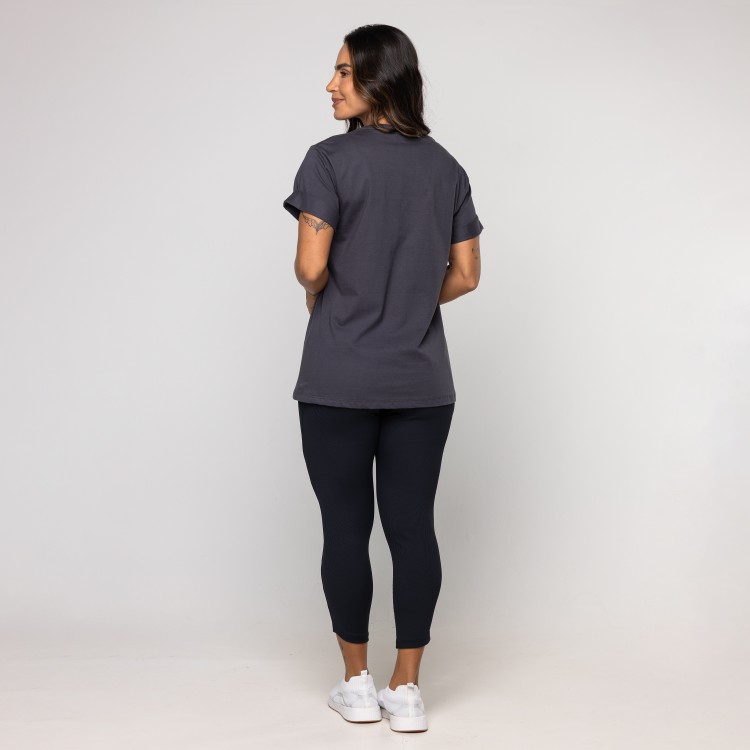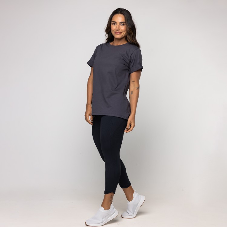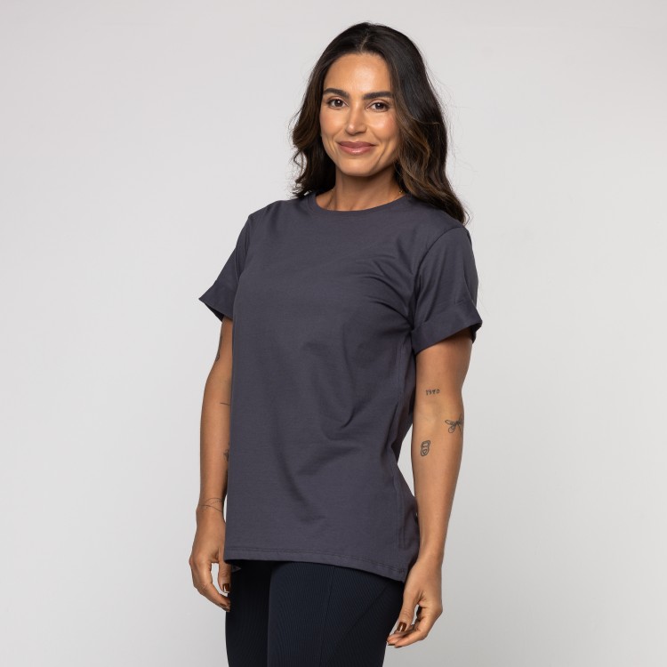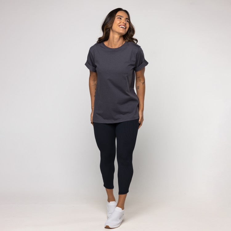 Confeccionada em malha 100% algodão, tem modelagem reta, caimento leve e o detalhe das mangas dobradas, que adiciona um toque de feminilidade e estilo.