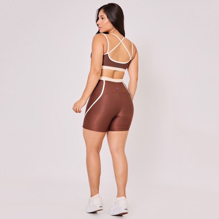 Com cores bicolor, e detalhe em viés ao longo do short.