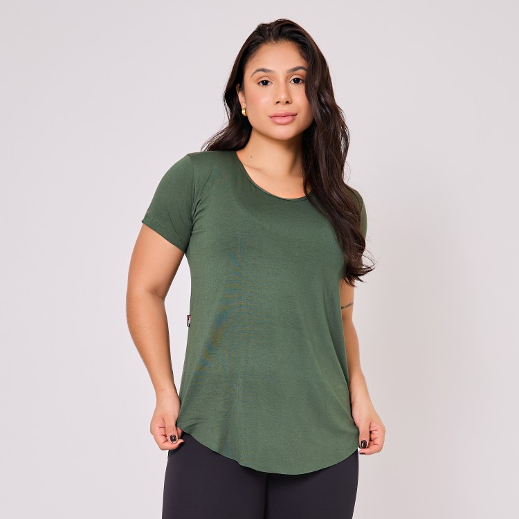 Peça de manga curta e gola circular, tem uma modelagem alongada e soltinha, fenda lateral, básica porém dá todo um charme em seu look.