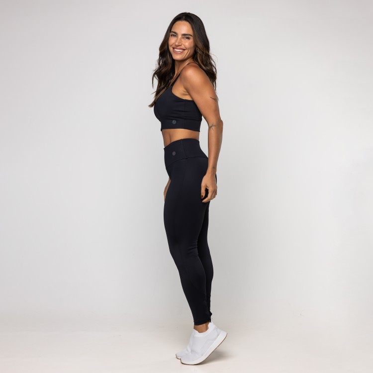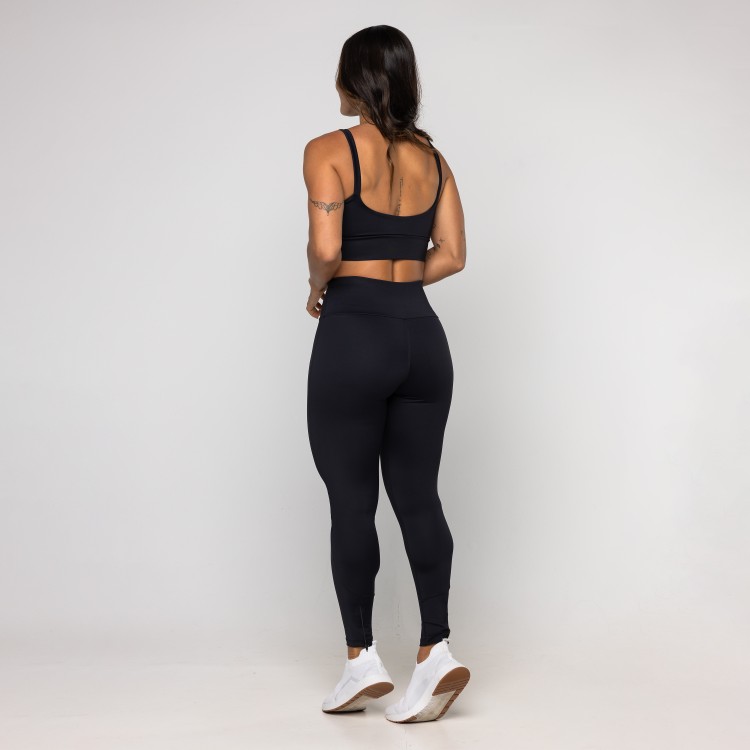 A Calça Sandra une o design minimalista à funcionalidade tecnológica. Confeccionada em poliamida de toque gelado, ela garante alta respirabilidade e compressão na medida certa. O grande destaque é o zíper estratégico posicionado na parte de trás da barra, que facilita o ajuste e traz um ar moderno ao visual. Com cós alto e modelagem clean sem bolsos, oferece uma silhueta alongada, segura e sofisticada.