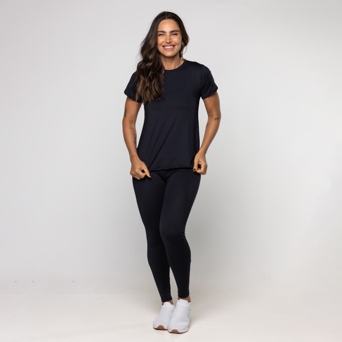 A Calça Sandra une o design minimalista à funcionalidade tecnológica. Confeccionada em poliamida de toque gelado, ela garante alta respirabilidade e compressão na medida certa. O grande destaque é o zíper estratégico posicionado na parte de trás da barra, que facilita o ajuste e traz um ar moderno ao visual. Com cós alto e modelagem clean sem bolsos, oferece uma silhueta alongada, segura e sofisticada.