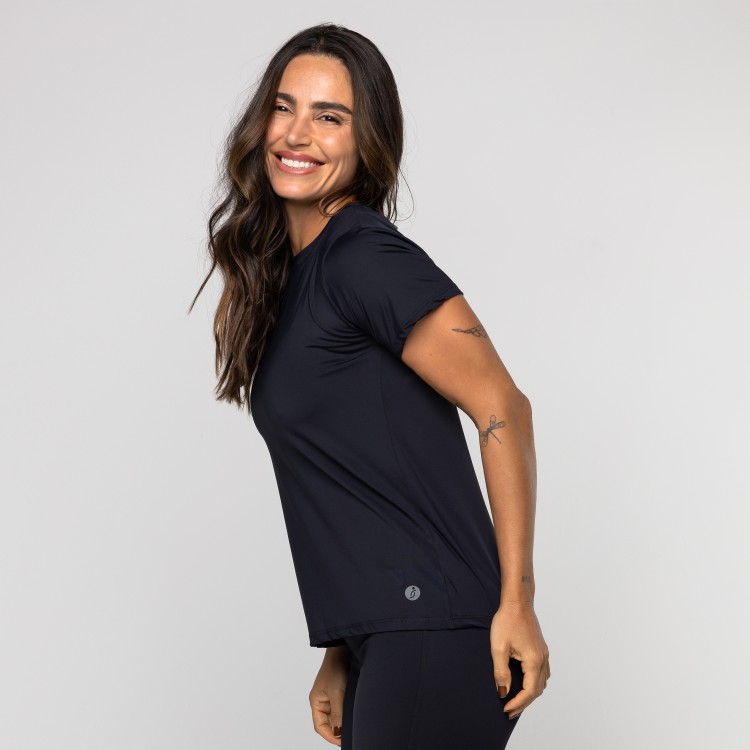 A Blusa Larissa é o básico essencial que une performance e estilo para a sua rotina. Confeccionada em poliamida de alta tecnologia, ela possui um toque gelado e extremamente macio, garantindo leveza absoluta e rápida evaporação do suor durante as atividades físicas. Sua modelagem clássica, oferece um caimento fluido que não marca e proporciona total liberdade de movimento. Com um design clean e atemporal, é a peça curinga para compor looks que vão do treino intenso ao lazer com máxima sofisticação e conforto.