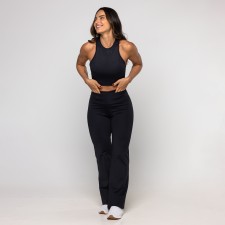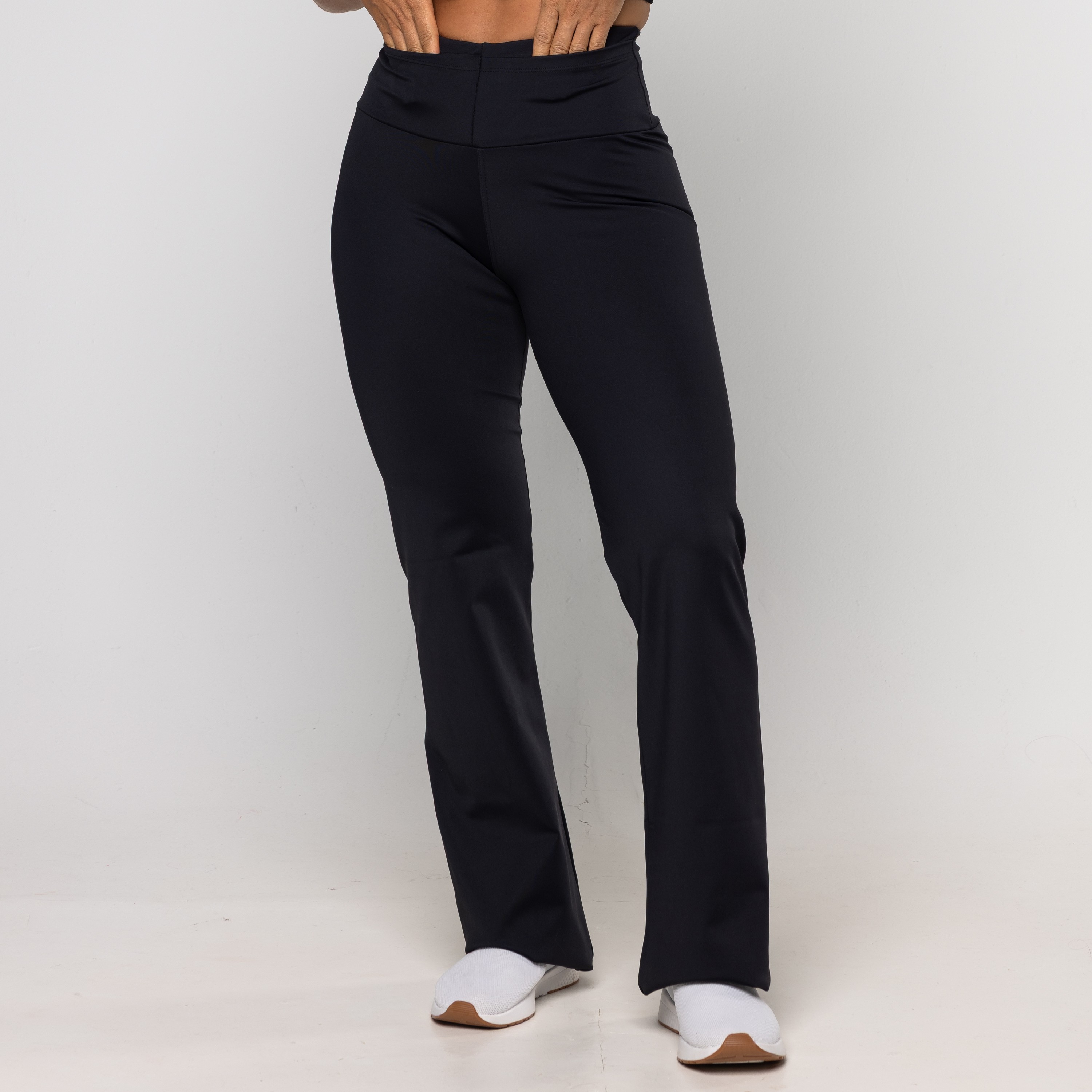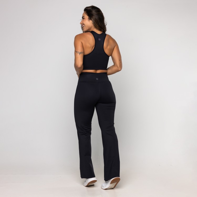 Calça Bailarina Sandra é confeccionada em poliamida, possui dupla frontura (zero transparência), ela oferece um toque gelado, alta respirabilidade e a compressão ideal para valorizar a silhueta com total conforto. Sua modelagem bailarina (flare) alonga visualmente as pernas, proporcionando um caimento sofisticado que transita facilmente da academia ao look casual. O design é enriquecido com um prático bolso embutido no cós, perfeito para guardar pequenos itens com segurança durante o movimento.