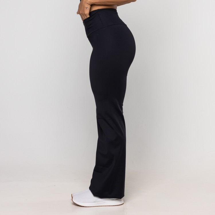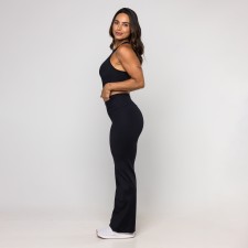 Calça Bailarina Sandra é confeccionada em poliamida, possui dupla frontura (zero transparência), ela oferece um toque gelado, alta respirabilidade e a compressão ideal para valorizar a silhueta com total conforto. Sua modelagem bailarina (flare) alonga visualmente as pernas, proporcionando um caimento sofisticado que transita facilmente da academia ao look casual. O design é enriquecido com um prático bolso embutido no cós, perfeito para guardar pequenos itens com segurança durante o movimento.