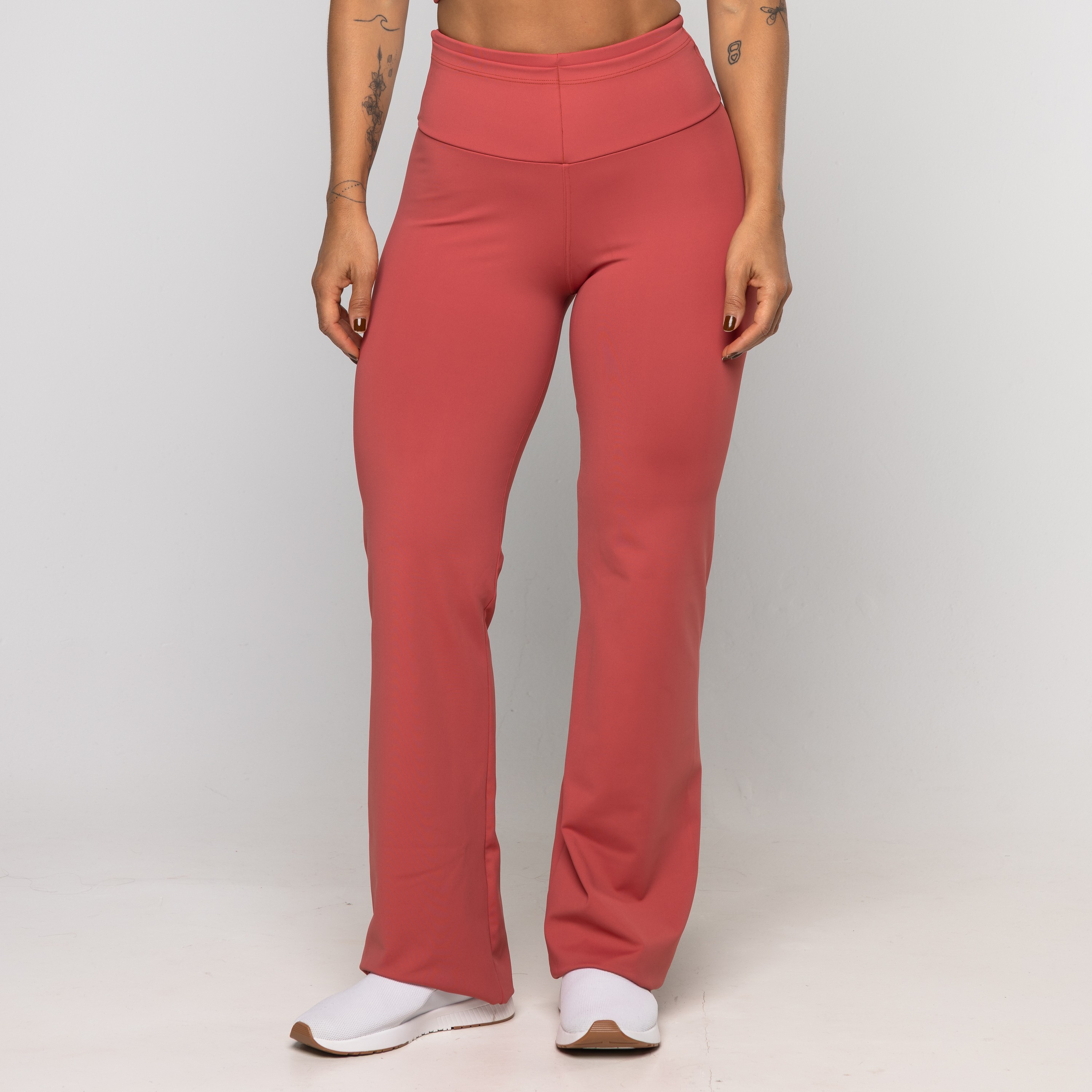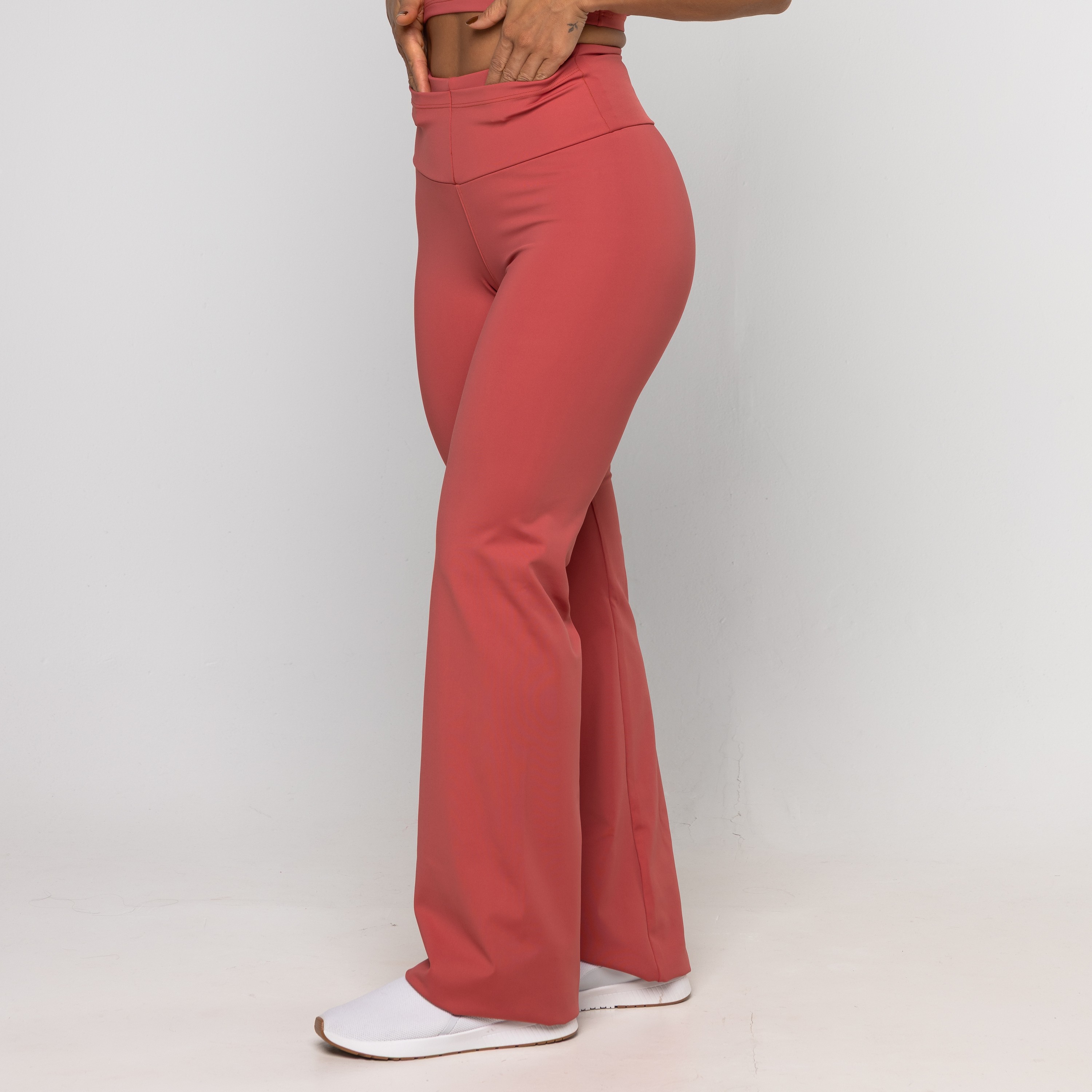 Calça Bailarina Sandra é confeccionada em poliamida, possui dupla frontura (zero transparência), ela oferece um toque gelado, alta respirabilidade e a compressão ideal para valorizar a silhueta com total conforto. Sua modelagem bailarina (flare) alonga visualmente as pernas, proporcionando um caimento sofisticado que transita facilmente da academia ao look casual. O design é enriquecido com um prático bolso embutido no cós, perfeito para guardar pequenos itens com segurança durante o movimento.