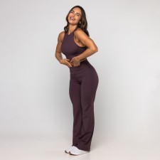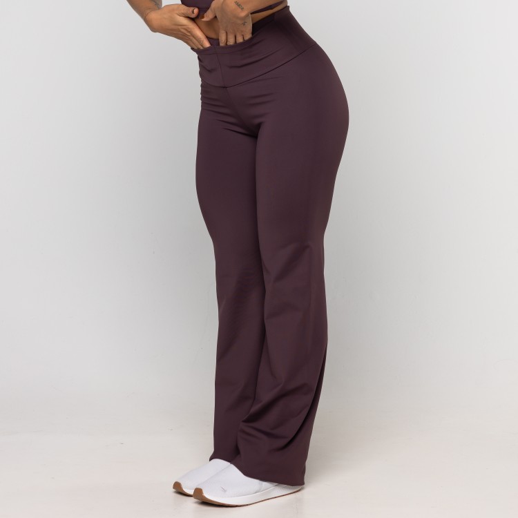Calça Bailarina Sandra é confeccionada em poliamida, possui dupla frontura (zero transparência), ela oferece um toque gelado, alta respirabilidade e a compressão ideal para valorizar a silhueta com total conforto. Sua modelagem bailarina (flare) alonga visualmente as pernas, proporcionando um caimento sofisticado que transita facilmente da academia ao look casual. O design é enriquecido com um prático bolso embutido no cós, perfeito para guardar pequenos itens com segurança durante o movimento.