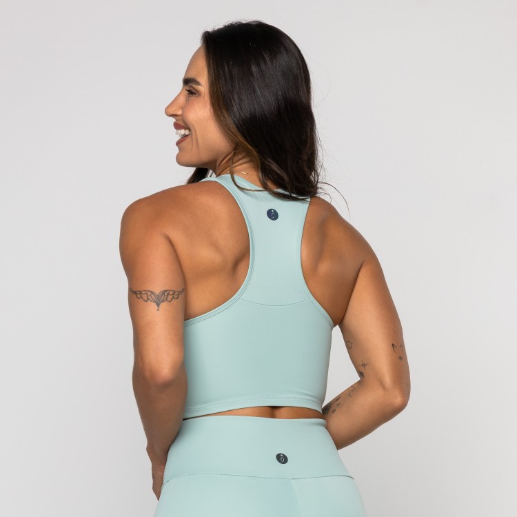 Cropped Sandra é a definição de modernidade e suporte para o seu treino. Com a modelagem de gola trapézio e costas nadador, oferece segurança e sofisticação. Confeccionado em poliamida dupla frontura, possui toque gelado e alta compressão. O design minimalista destaca-se pela funcionalidade, contando com abertura interna para bojo para um ajuste personalizado. É a peça ideal para quem busca um visual "clean" e tecnológico, garantindo liberdade total de movimento com máxima elegância.