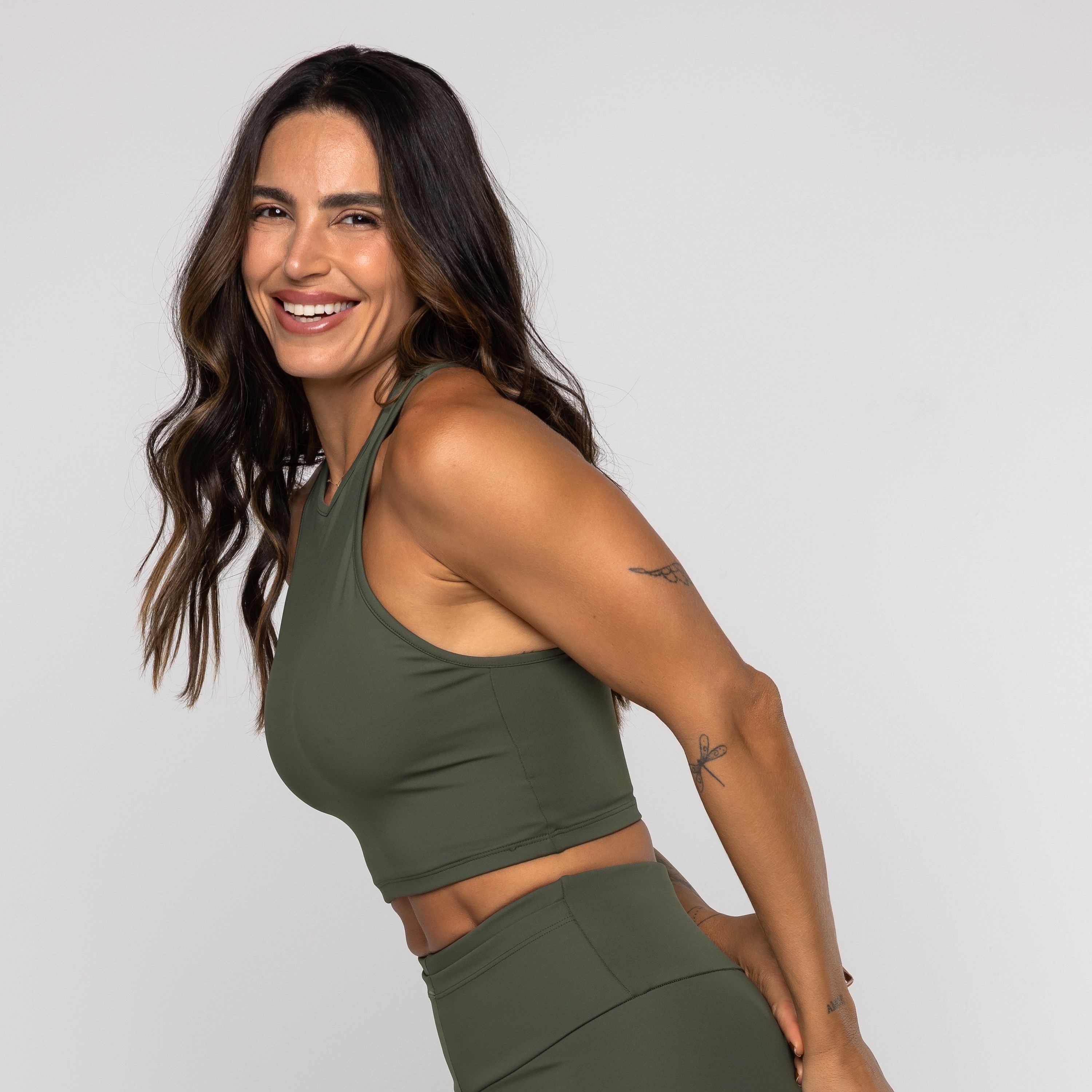 Cropped Sandra é a definição de modernidade e suporte para o seu treino. Com a modelagem de gola trapézio e costas nadador, oferece segurança e sofisticação. Confeccionado em poliamida dupla frontura, possui toque gelado e alta compressão. O design minimalista destaca-se pela funcionalidade, contando com abertura interna para bojo para um ajuste personalizado. É a peça ideal para quem busca um visual "clean" e tecnológico, garantindo liberdade total de movimento com máxima elegância.