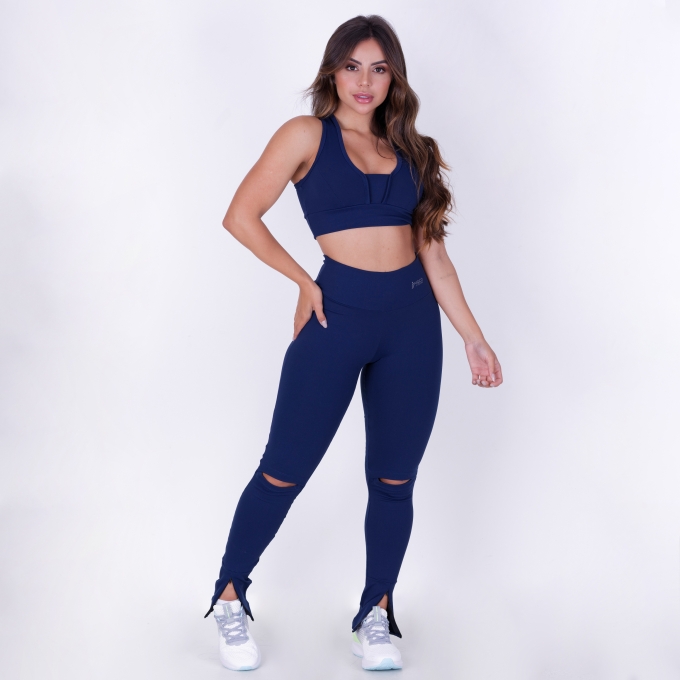 Calça Legging Abertura No Joelho E Zíper Na Barra Juliete