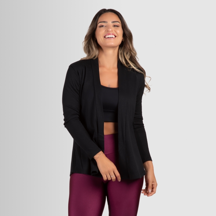 • Cardigan Feminino Canelado Sobrepor Ribana