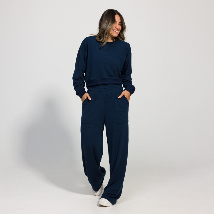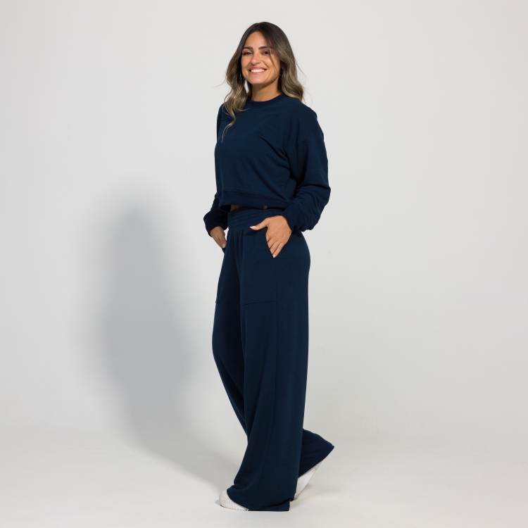 A calça pantalona Grazi em moletim é uma peça que combina o estilo elegante da pantalona com o conforto do tecido moletim. O moletim é um tipo de malha macia e confortável, semelhante ao moletom, mas com um aspecto mais refinado. Essa calça apresenta uma modelagem ampla e solta, com pernas largas que se abrem desde a cintura até a barra.A calça pantalona Grazi em moletim é versátil e pode ser usada em diferentes ocasiões, desde looks casuais até mais formais, dependendo da combinação de peças e acessórios. Ela oferece conforto durante o uso devido à sua modelagem ampla e ao tecido macio.
