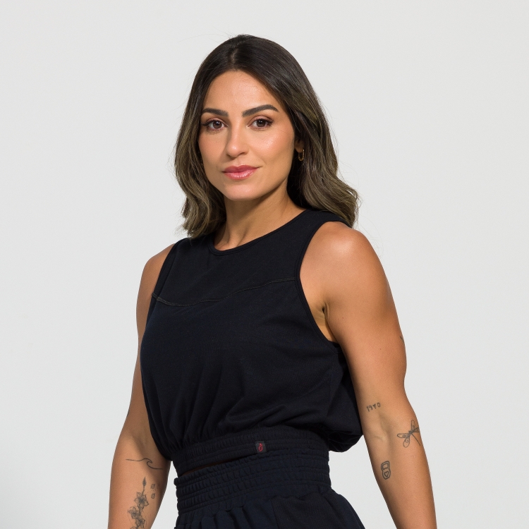 O Cropped Valentina em malha de ribana canelada, foi desenvolvido sem manga e com elástico franzido na barra, sendo uma peça moderna e versátil. O canelada é um tipo de tecido elástico e texturizado, que se ajusta ao corpo e oferece conforto. Esse Cropped, como o nome já sugere, possui uma modelagem curta, parando acima da linha da cintura, e não possui mangas, o que o torna adequado para climas mais quentes ou para looks mais descontraídos. O elástico franzido na barra cria um efeito de blusinha mais larga na parte superior e uma barra ajustada na cintura, proporcionando um detalhe feminino e estiloso.