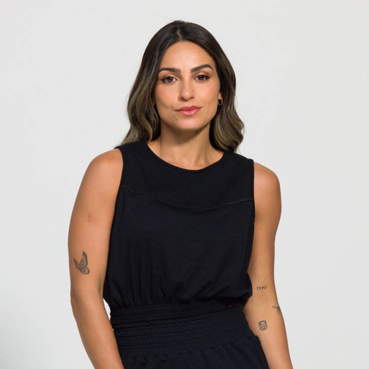 O Cropped Valentina em tecido Canelado, foi desenvolvido sem manga e com elástico franzido na barra, sendo uma peça moderna e versátil. O canelada é um tipo de tecido elástico e texturizado, que se ajusta ao corpo e oferece conforto.Esse cropped, como o nome já sugere, possui uma modelagem curta, parando acima da linha da cintura, e não possui mangas, o que o torna adequado para climas mais quentes ou para looks mais descontraídos.O elástico franzido na barra cria um efeito de blusinha mais larga na parte superior e uma barra ajustada na cintura, proporcionando um detalhe feminino e estiloso.