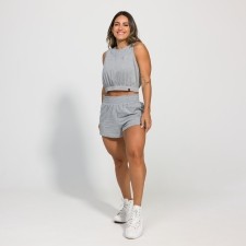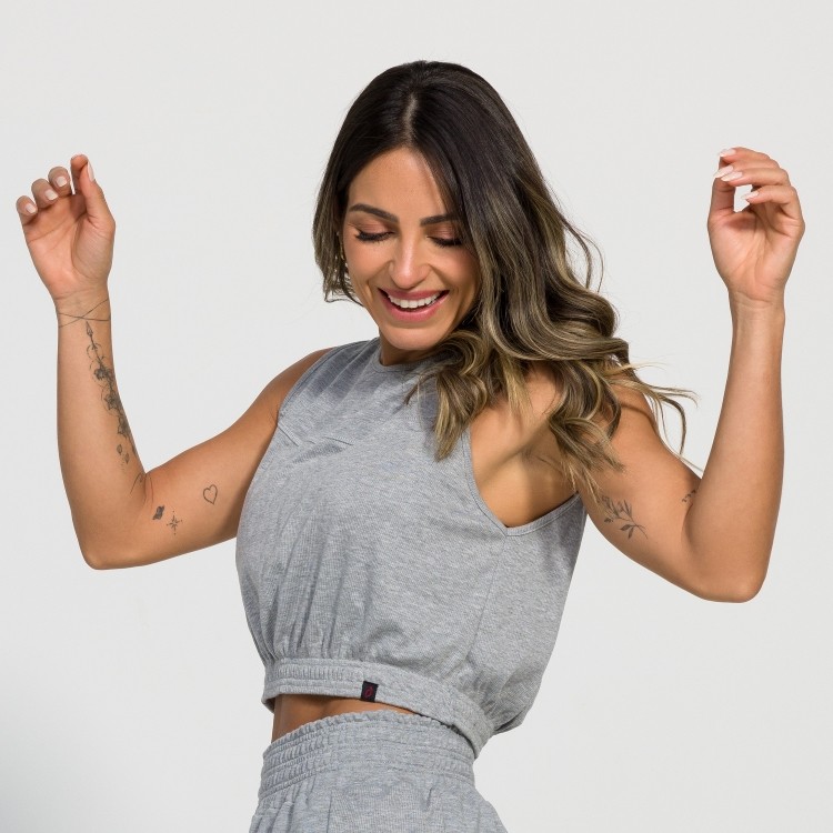 O Cropped Valentina em tecido Canelado, foi desenvolvido sem manga e com elástico franzido na barra, sendo uma peça moderna e versátil. O canelada é um tipo de tecido elástico e texturizado, que se ajusta ao corpo e oferece conforto.Esse cropped, como o nome já sugere, possui uma modelagem curta, parando acima da linha da cintura, e não possui mangas, o que o torna adequado para climas mais quentes ou para looks mais descontraídos.O elástico franzido na barra cria um efeito de blusinha mais larga na parte superior e uma barra ajustada na cintura, proporcionando um detalhe feminino e estiloso.