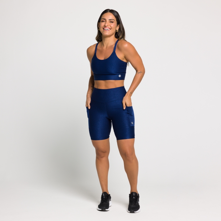 Bermuda Fitness Ciclista com Bolsos Laterais Cós Alto Jolie