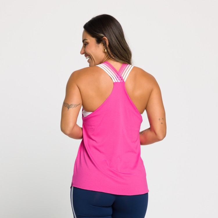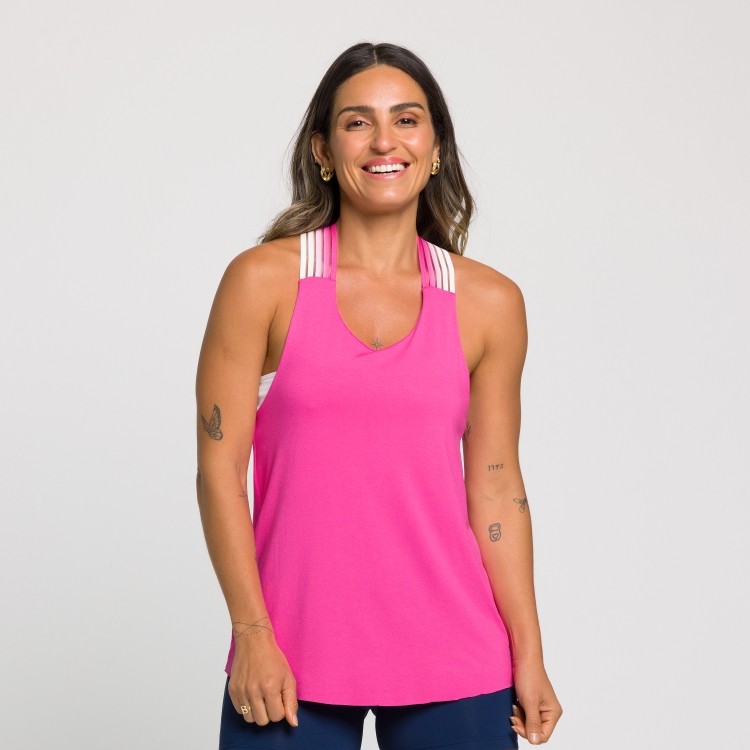 A Regata Angelina possui modelagem nadador, com as alças cruzadas nas costas em elástico degradê. Esse estilo confere um visual esportivo e ao mesmo tempo feminino, valorizando os ombros e as costas. Com uma modelagem mais soltinha ela é perfeita para criar looks estilosos e versáteis. Com uma liberdade de movimento proporcionada pela modelagem nadador. Essa peça se tornará uma escolha certeira para adicionar um toque de elegância ao seu guarda-roupa.