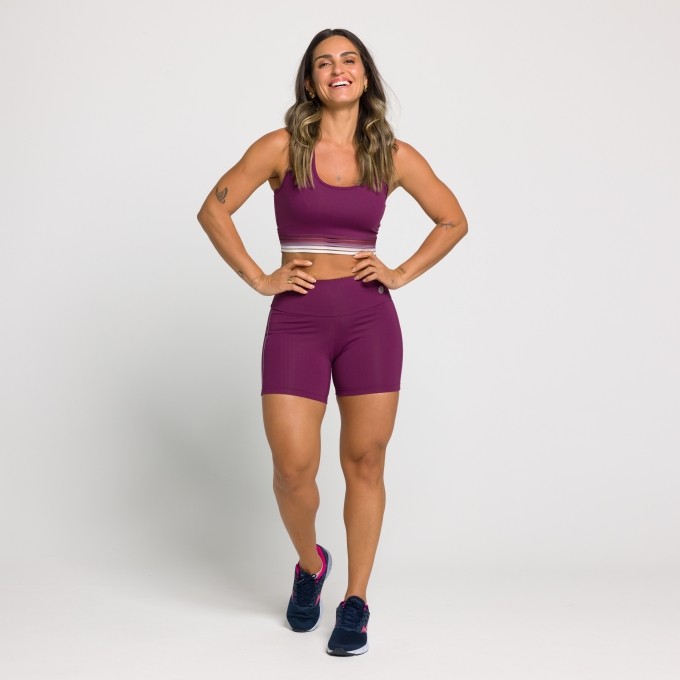 Short Fitness Sarah com Faixa Lateral em Elástico Degradê