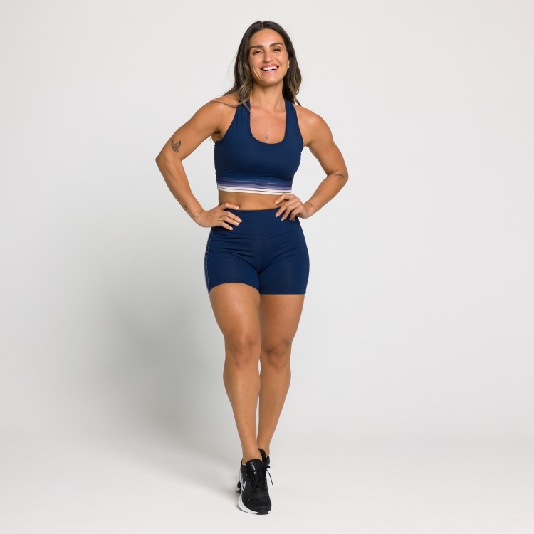Short Fitness Sarah com Faixa Lateral em Elástico Degradê