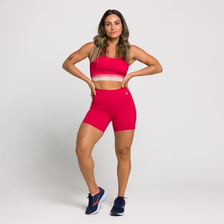 Short Fitness Sarah com Faixa Lateral em Elástico Degradê