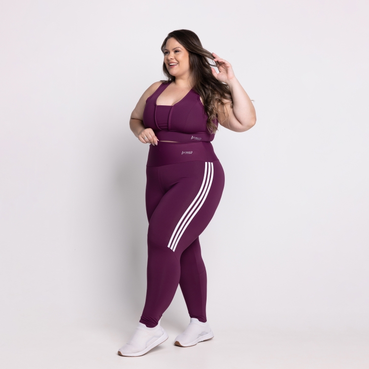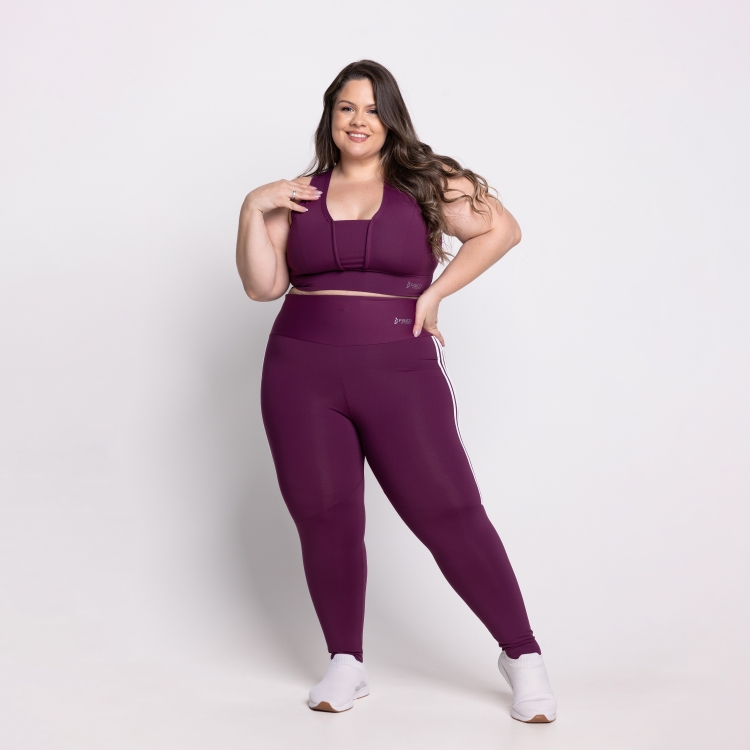 Calça Legging Fitness Com Viés Lateral Duda com chapados laterais e cós alto, uma opção moderna, estilosa e confortável para seus treinos ou uso diário. Esses chapados laterais adicionam um toque de estilo e ajudam a valorizar o formato das pernas, proporcionando um visual mais elegante, e ressaltando a beleza Plus Size. A calça possui um cós alto que ajuda a manter a calça no lugar durante os movimentos, proporcionando conforto e segurança. Essa combinação de chapados laterais, cós alto e alta elasticidade torna a calça legging uma opção versátil para diferentes atividades físicas, desde treinos na academia até práticas esportivas ao ar livre.