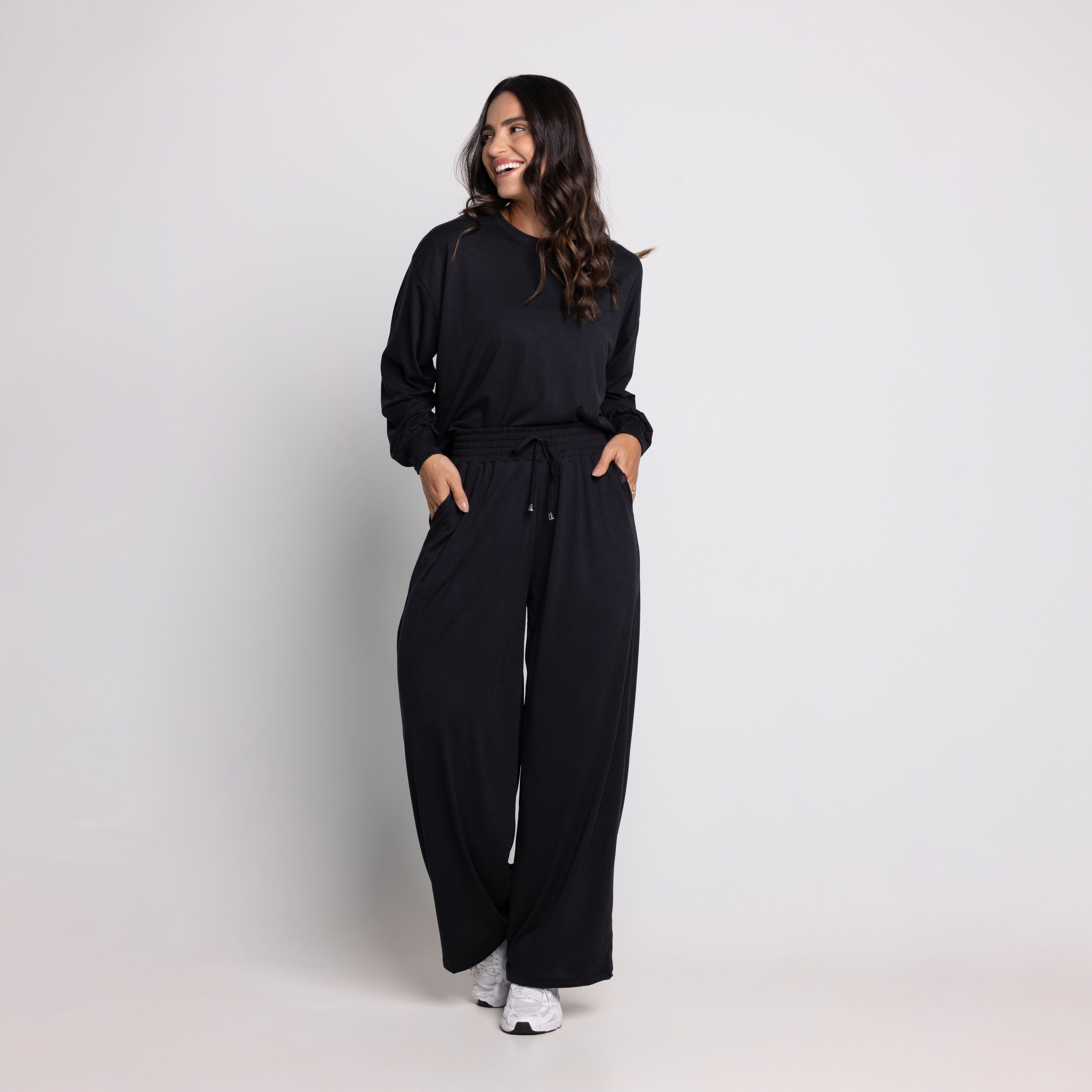 Calça Paola em Suede é uma escolha sofisticada e elegante para qualquer ocasião. Com sua modelagem ampla e fluida, ela proporciona conforto e movimento, enquanto o tecido em suede adiciona um toque de luxo ao visual. A cintura alta e o corte impecável alongam a silhueta, criando uma aparência elegante e refinada. Versátil e atemporal, a calça pantalona Paola em suede é uma peça-chave que pode ser usada em diversas ocasiões, garantindo estilo e sofisticação em qualquer momento.Devido à sua composição, o suede é um tecido que oferece isolamento térmico, mantendo o corpo aquecido em climas mais frios.Tecido de trama com toque tão macio que aparenta ser pele de pêssego com excelente caimento e elasticidade.